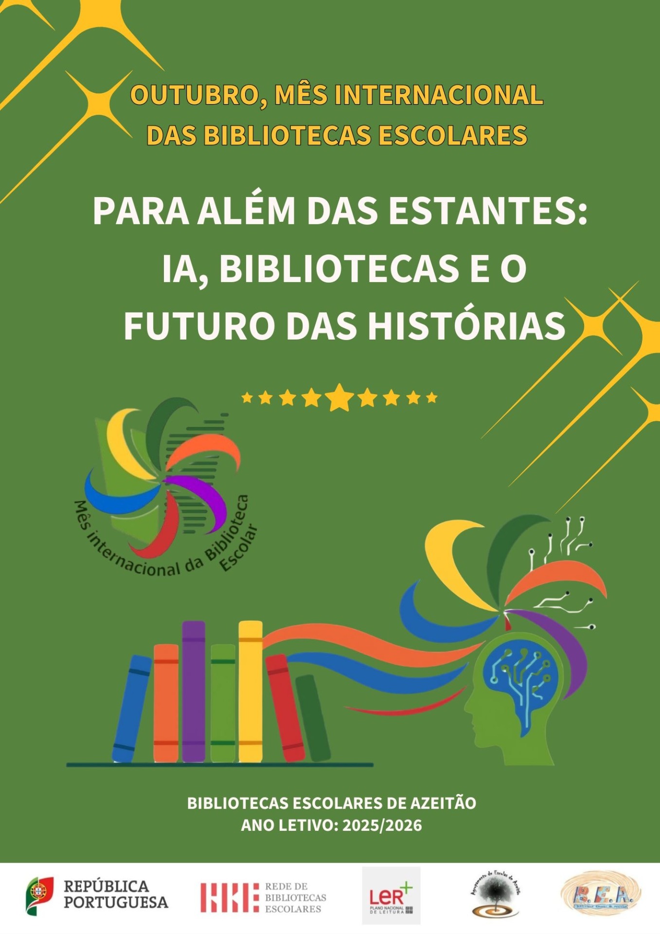 As Bibliotecas Escolares de Azeitão associam-se, naturalmente, a esta iniciativa, este ano subordinada ao tema "Para além das estantes: IA, Bibliotecas e o Futuro das Histórias". Eis o cartaz que preparámos para esse efeito. Em breve, daremos mais pormenores sobre as atividades que vamos preparar.